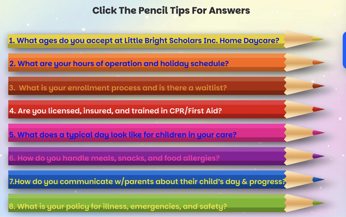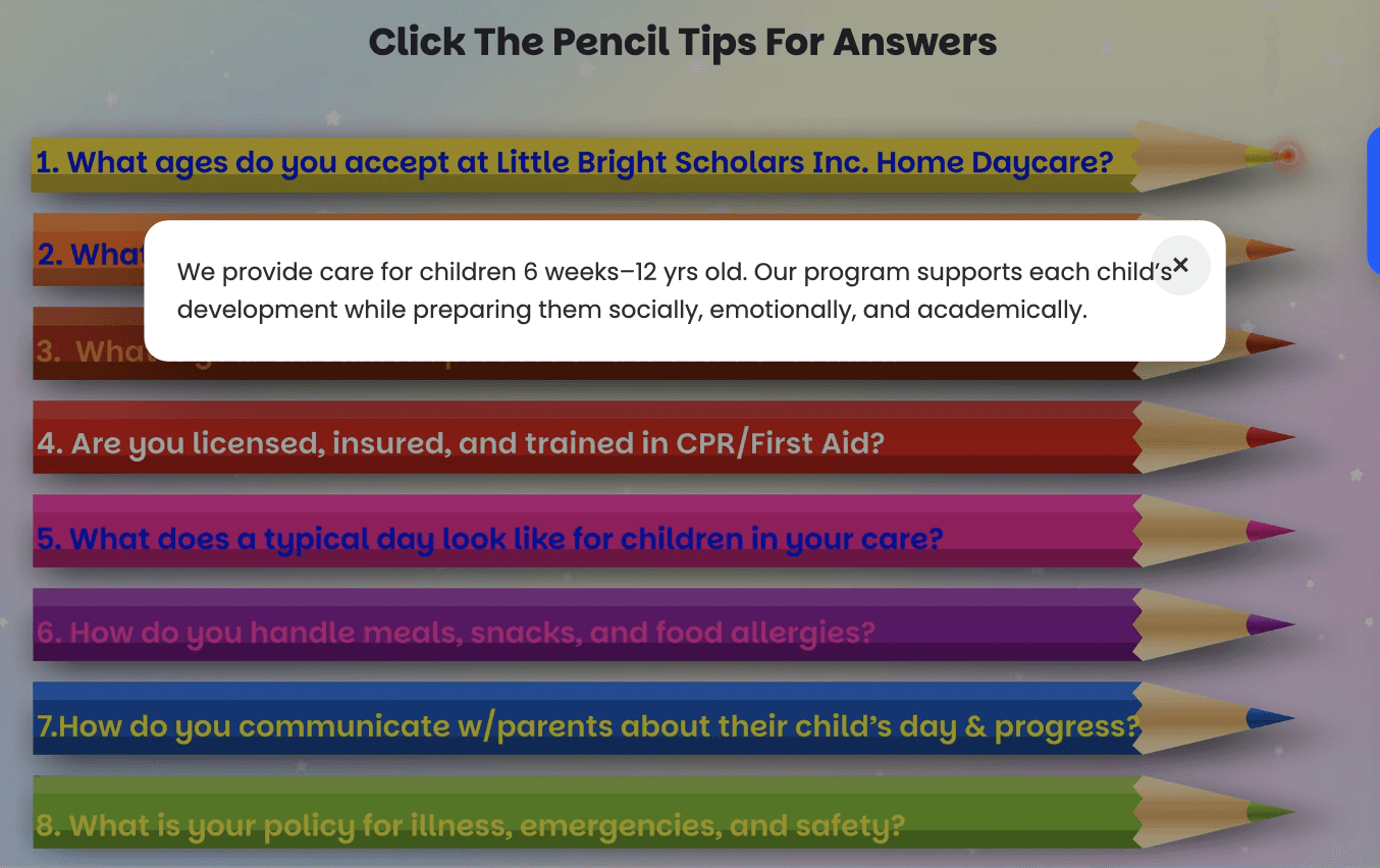 The idea to create a custom FAQ widget using an svg image of colored pencils was an instant success after test piloting it on one of our clients websites. Creating what we believe is a one of a kind custom widget definitely gave them the wow factor!